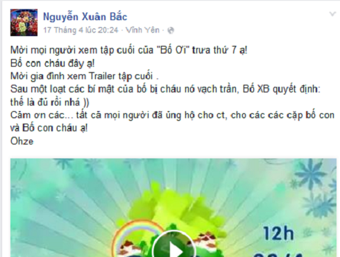 Diễn viên Xuân Bắc cũng không quên gửi lời cảm ơn tới chương trình, tới mọi người đã ủng hộ chương trình, ủng hộ 4 cặp bố con.