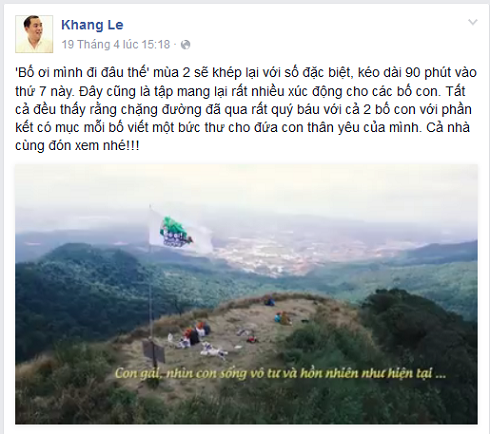 Theo đó, sau khi tập đặc biệt của mùa 2 kết thúc, tập đầu tiên của mùa thứ 3 “Bố ơi! Mình đi đâu thế?” sẽ tiếp nối sóng vào ngày 30/4.