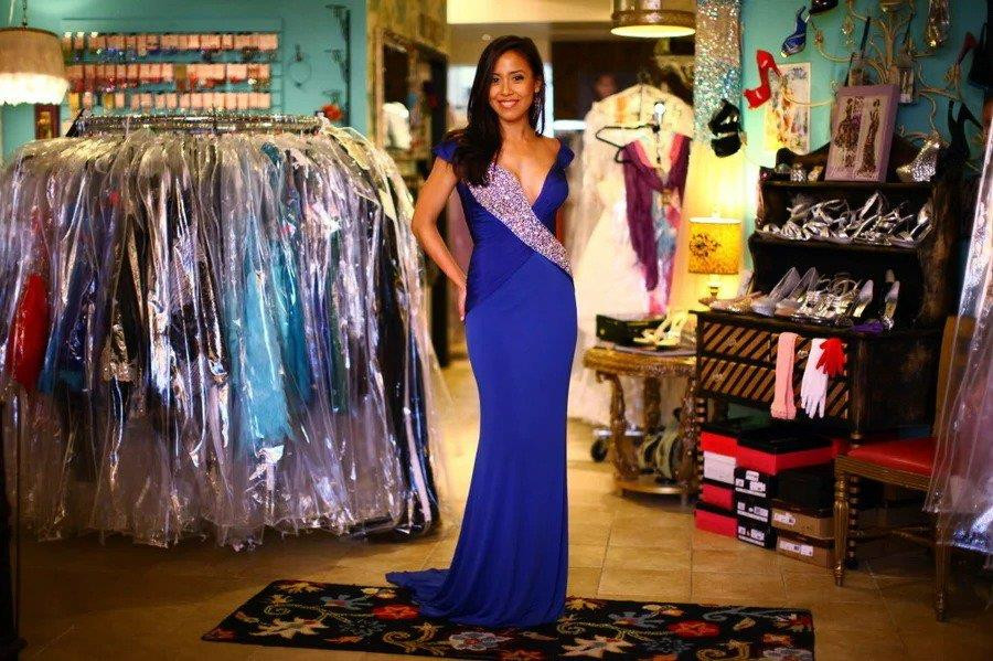 Quản lý cửa hàng đưa Bermudez ướm thử mẫu váy xanh dương đậm với điểm nhấn hàng nghìn viên kim cương giả được đính kết khéo léo. Chưa kịp trầm trồ bản thân trước gương thì cô gái trẻ đã choáng váng khi nghe đến mức giá 3.000 USD.