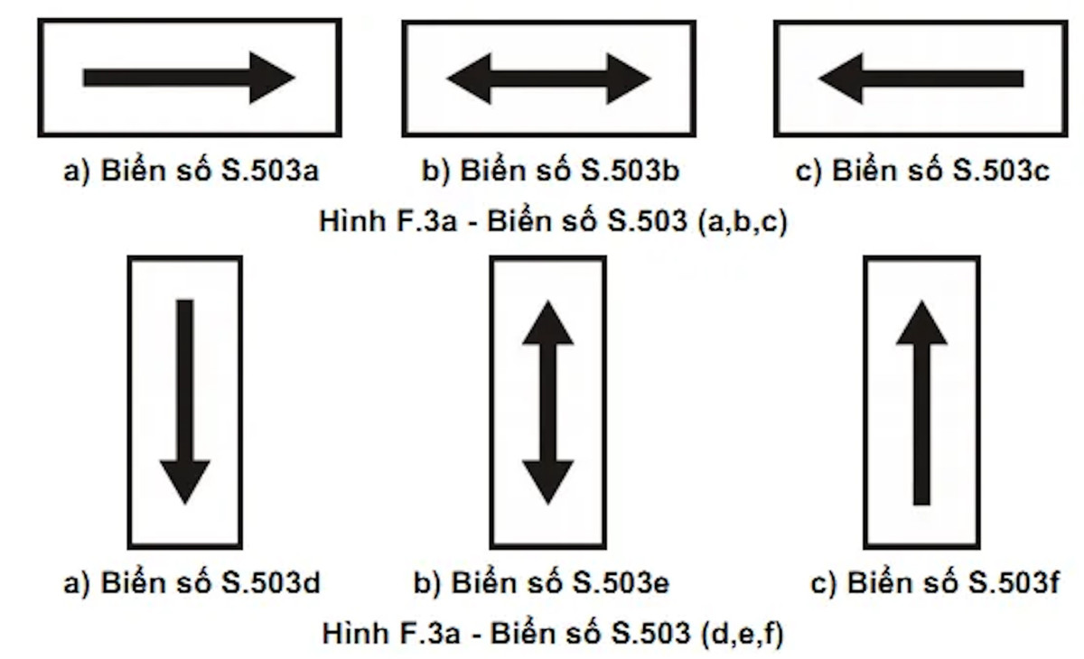 - Các biển số S.503 (a,b,c) đặt bên dưới các biển báo cấm, biển hiệu lệnh để chỉ hướng tác dụng của biển là hướng vuông góc với chiều đi.