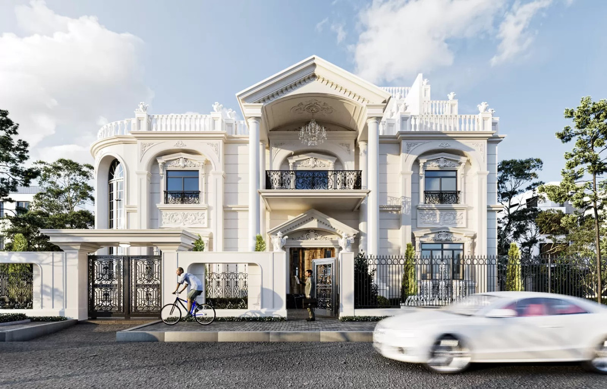 Mẫu biệt thự phong cách tân cổ điển được thiết kế 3 tầng sang trọng, toát lên sự giàu sang. (Ảnh: Vinavic)