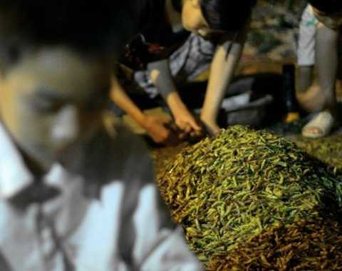 Ông Nguyễn Văn Hải, trú tại xóm 14, Nghệ An cho biết: “Bắt châu chấu không khó mà lại có tiền vì được các quán ăn nhà hàng ưa chuộng, nên tranh thủ lúc thu hoạch mùa xong tôi và thằng con trai bắt kiếm thêm thu nhập". Ông Hải nói, đây là mùa thứ hai anh bắt châu chấu. Giá thu mua ngay tại chỗ là 20.000 đến 50.000 đồng/kg, có ngày hai bố con kiếm được 500.000 - 600.000 đồng".