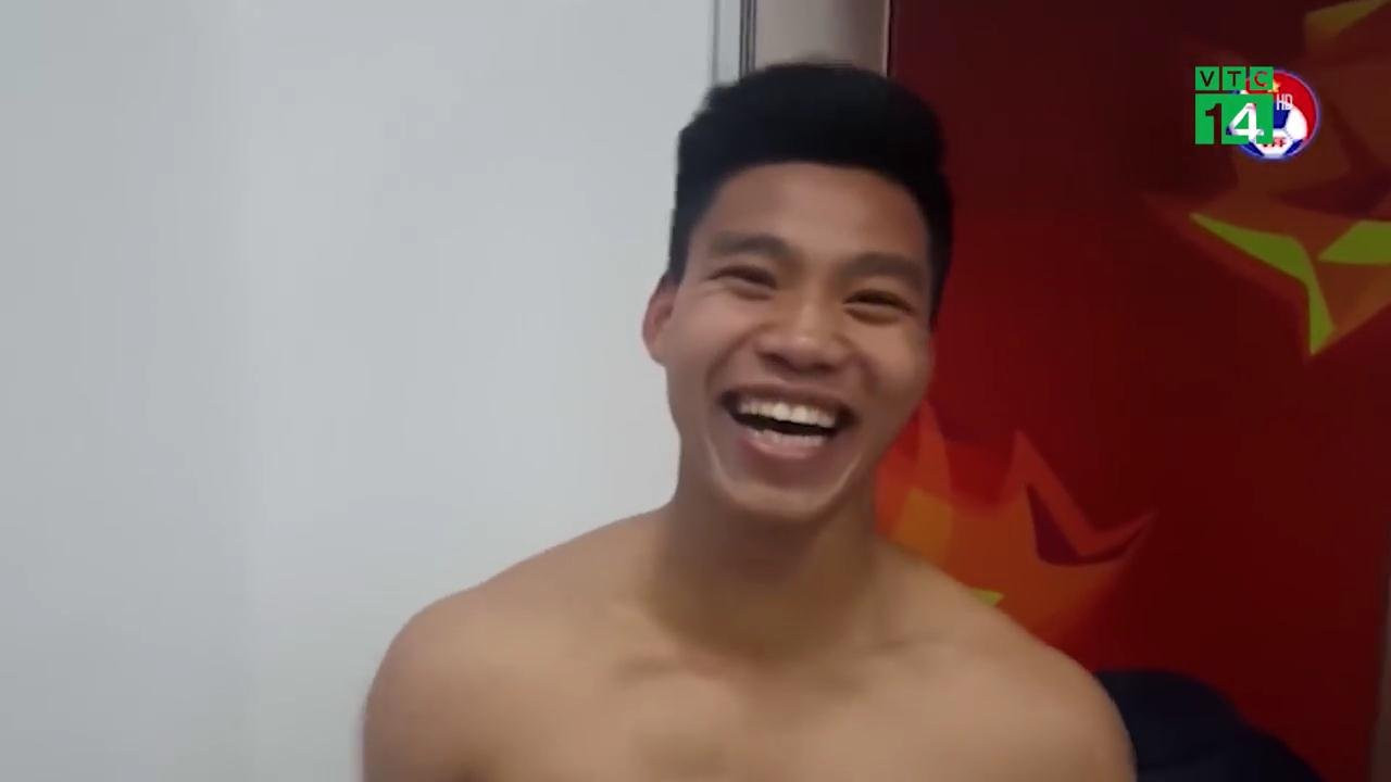 Sau cú sút cuối cùng của Văn Thanh, các cầu thủ của tuyển U23 Việt Nam và ban huấn luyện ăn mừng như thế nào trong phòng thay đồ?