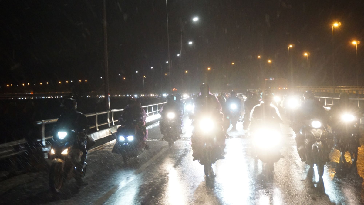 Dòng người đội mưa xuyên đêm chạy xe máy về quê.
