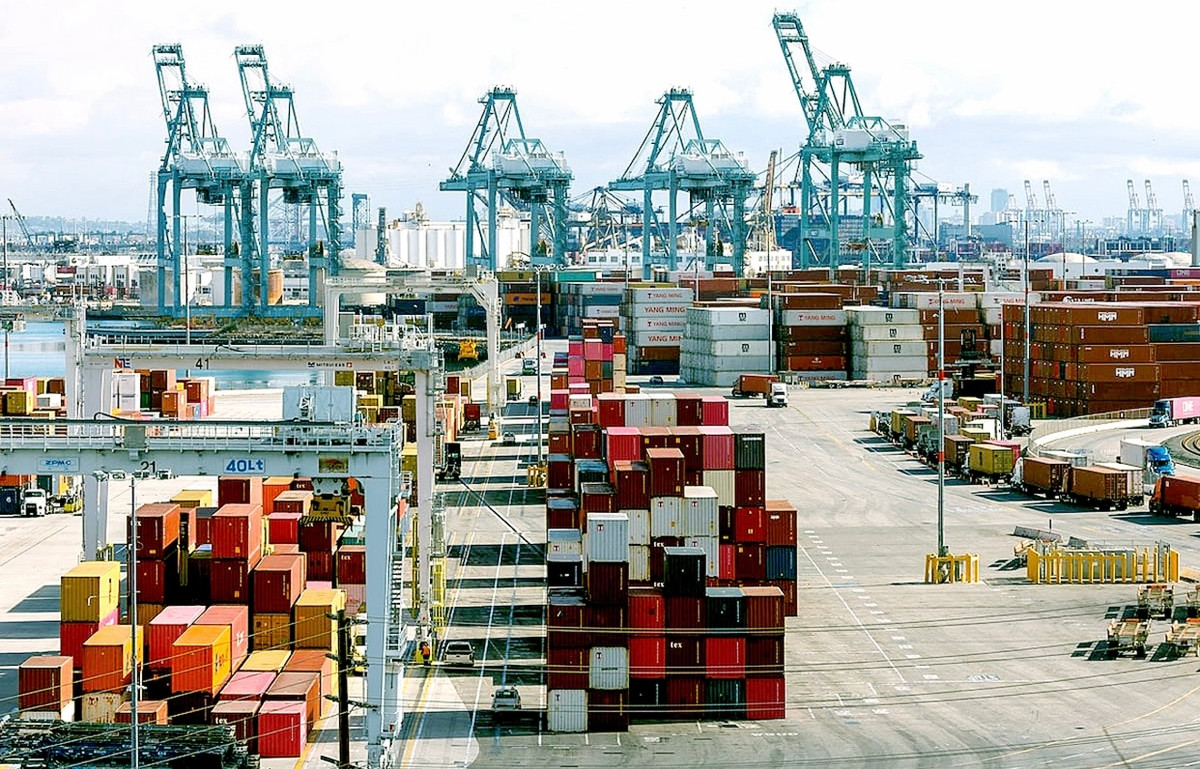 Các container vận chuyển từ Trung Quốc cập cảng Los Angeles, Mỹ vào tháng 2/2025. (Ảnh: Reuters)