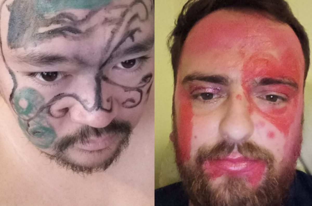 Vừa được cháu gái trang điểm cho mà cứ ngỡ mới đánh nhau về, mắt mũi bầm hết rồi này.