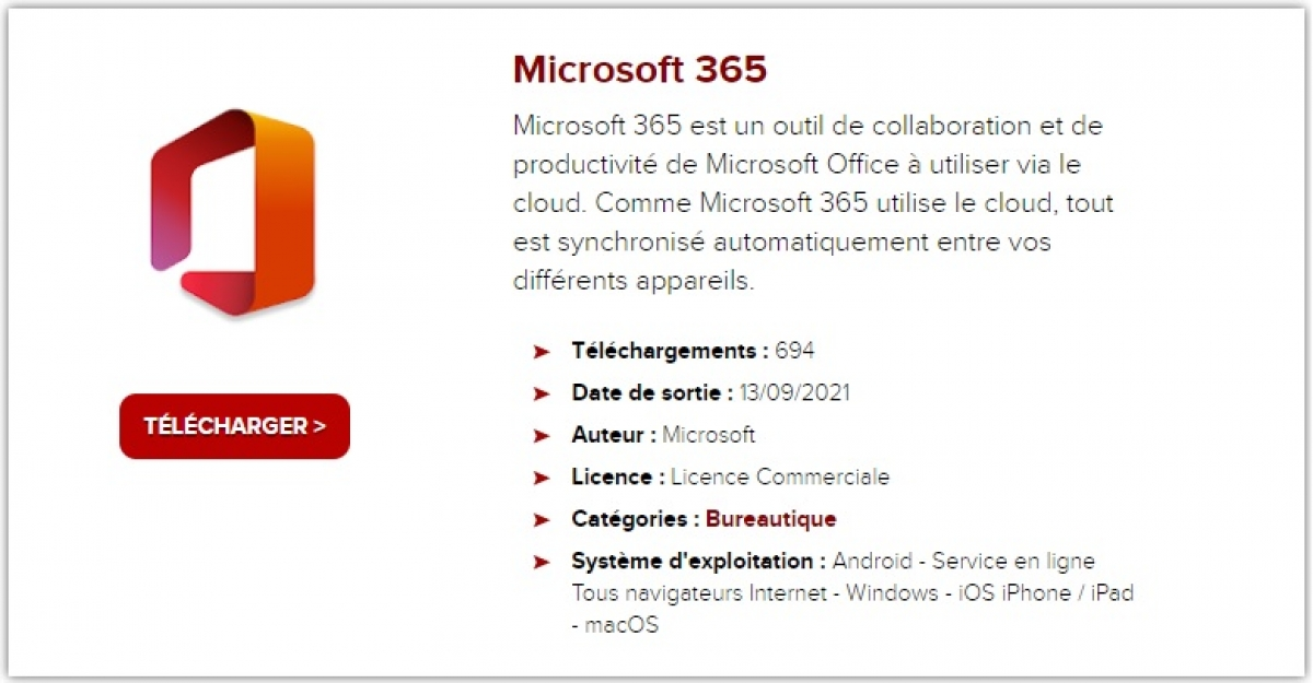 Trước đây được gọi là "Office 365", bộ Microsoft 365 bao gồm Microsoft Word, Excel, PowerPoint, OneNote, Outlook, OneDrive và Skype. Các chương trình có thể được sử dụng trên máy tính để bàn, máy tính xách tay, máy tính bảng và thậm chí cả điện thoại (chạy Windows, Mac và Android).