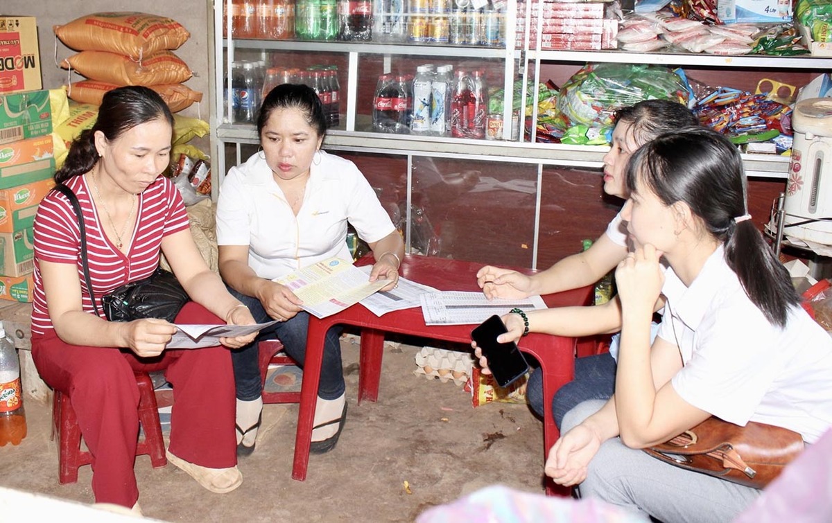 Cán bộ BHXH tại tỉnh Gia Lai đến tận nhà tuyên truyền, vận động người dân mua BHYT.
