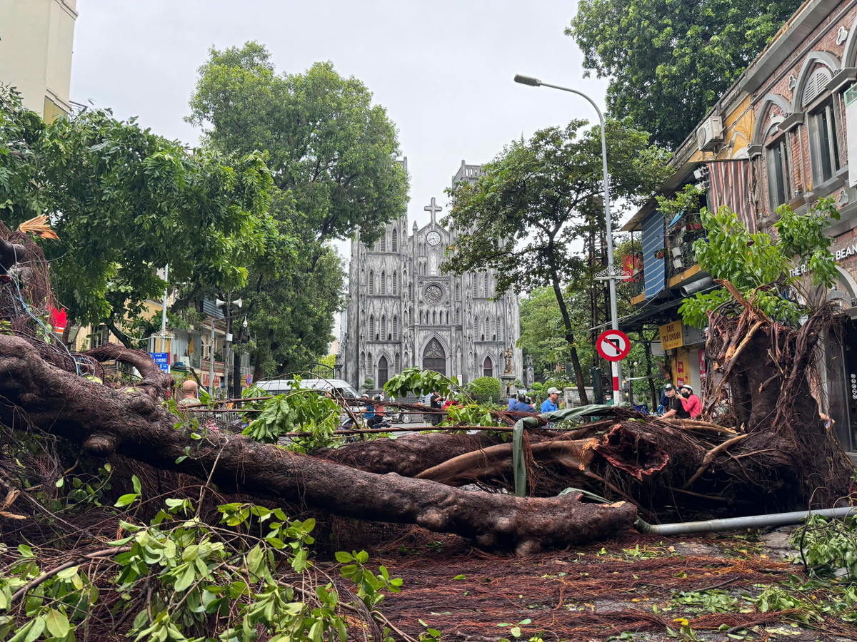 Tại phố Nhà Thờ (quận Hoàn Kiếm, Hà Nội), nơi có Nhà thờ lớn Hà Nội, ba cây lớn ngã chắn ngang đường. Ông Nguyễn Đình Vũ (SN 1955, trú quận Ba Đình) nói chưa bao giờ chứng kiến cơn bão có sức tàn phá lớn như bão số 3. "Cả thành phố tan hoang, hàng ngàn cây xanh bật gốc, những địa điểm nổi tiếng của Thủ đô giờ đây khó thể nhận ra", ông Vũ bùi ngùi nói.