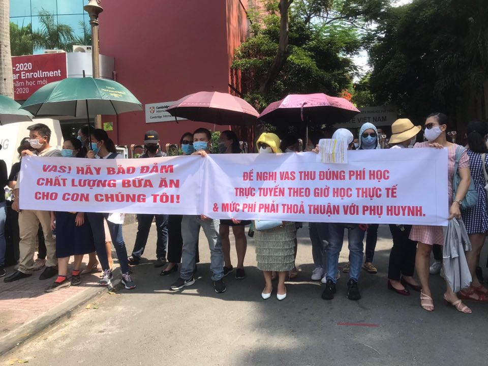 Phụ huynh trường Quốc tế Việt Úc phản đối chính sách thu học phí của trường.