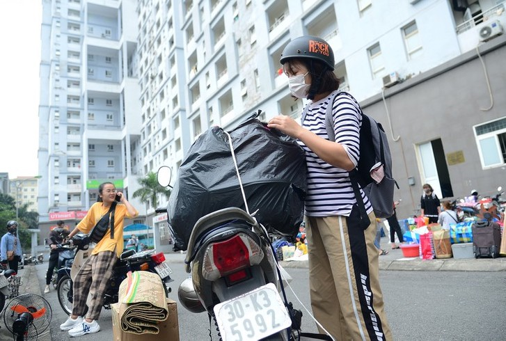 Sinh viên gấp rút dọn ra khỏi các khu vực ký túc xá để nhường chỗ cho các công tác chuẩn bị khu vực cách ky tập trung. (Ảnh: VOV)