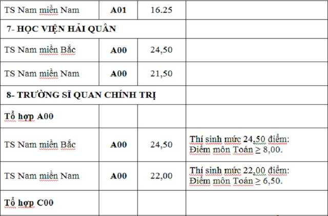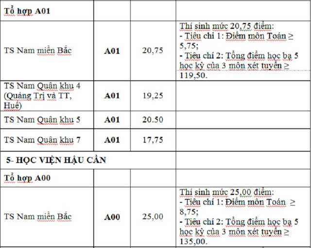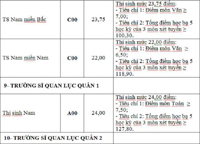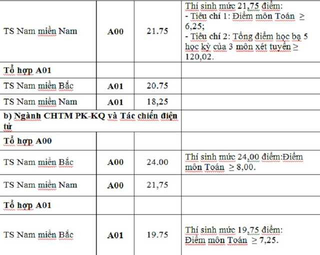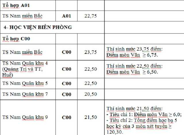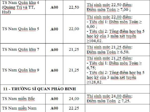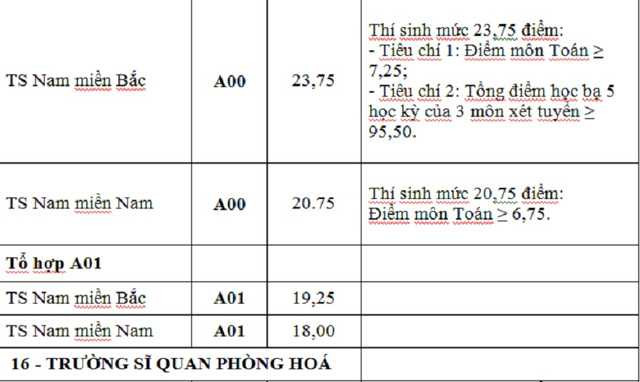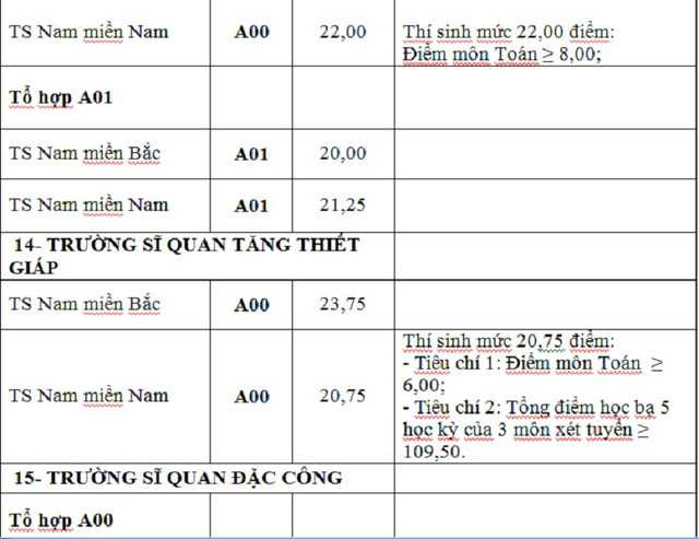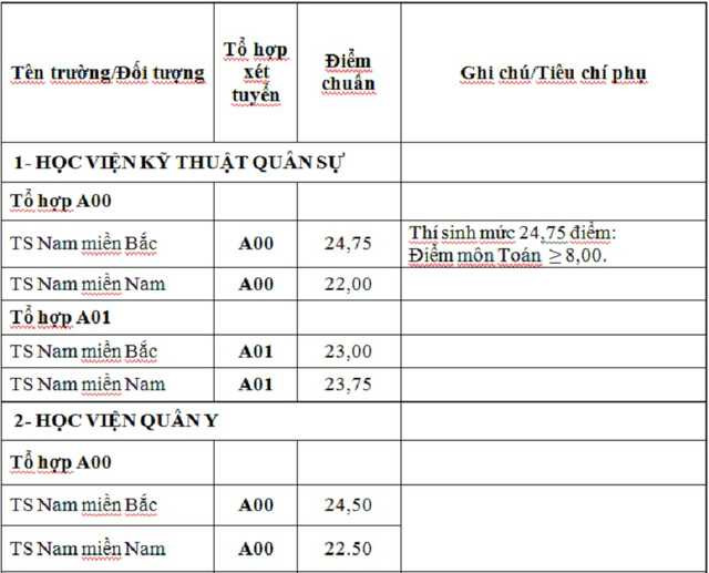 Theo đó, điểm chuẩn đợt bổ sung của một số trường có giảm so với trước. Điểm chuẩn nguyện vọng 2 vào các ngành của trường quân đội như sau: