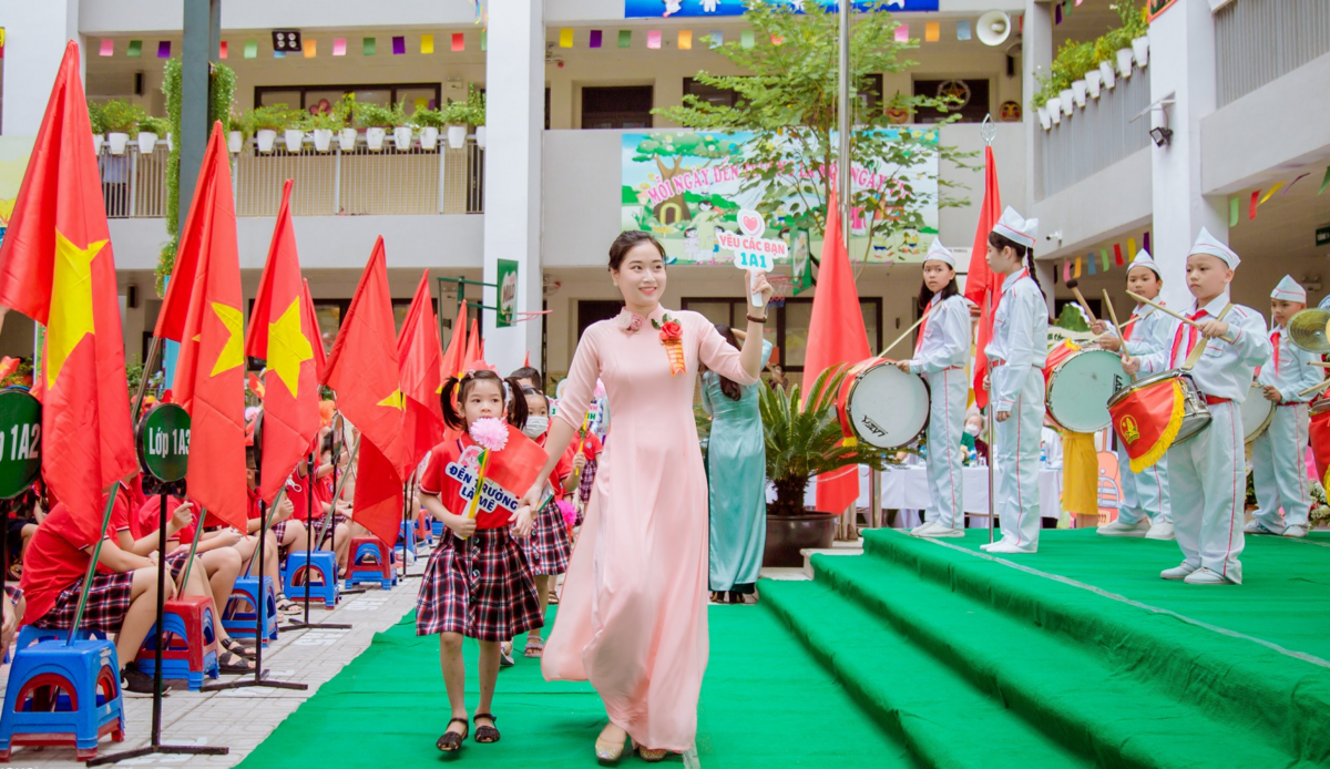 "Đối với học sinh lớp 1 và lớp 2 do các con còn nhỏ nên nhà trường đã sắp xếp cho tham dự lễ khai giảng trực tuyến trên hội trường. Nhà trường cũng gửi thông tin đến các đơn vị đối tác không gửi hoa và quà chúc mừng gây lãng phí mà thay vào đó là ủng hộ cho quỹ khuyến học, tặng học bổng cho học sinh hoặc chung tay cùng nhà trường ủng hộ đồng bào bị thiệt hại do mưa lũ ở vùng Bắc Trung Bộ", cô Hà thông tin.