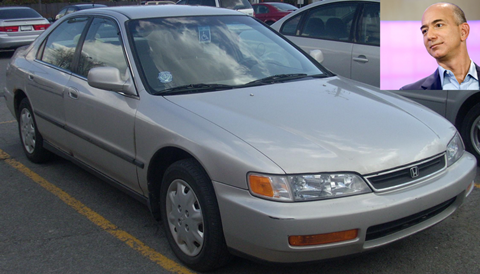 Vị CEO của Amazon, Jeff Bezos, có lẽ là một trường hợp đặc biệt khi ông đang đi lại bằng một chiếc Honda Accord 1996. Giá trên thị trường hiện tại chỉ là 4.000 USD. Trong khi khối tài sản hiện tại của Jeff lên tới hơn 19 tỉ USD.