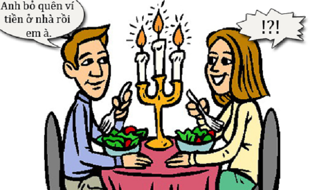 - Anh bỏ quên ví tiền ở nhà rồi em à.