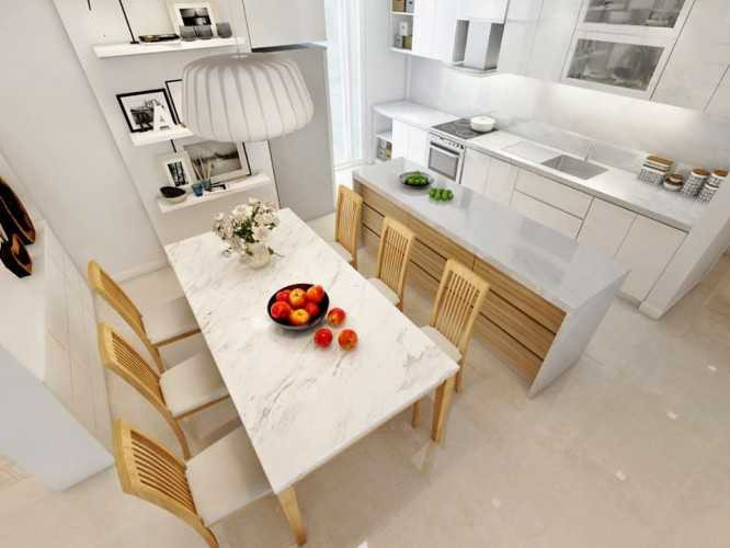 Và ngược lại, nếu phòng ăn quá lớn mà kê bàn ăn quá nhỏ thì sẽ thể hiện sự “không phóng khoáng, keo kiệt của gia chủ”. Vì thế bàn ăn nhất định phải chọn kích cỡ cho phù hợp.
