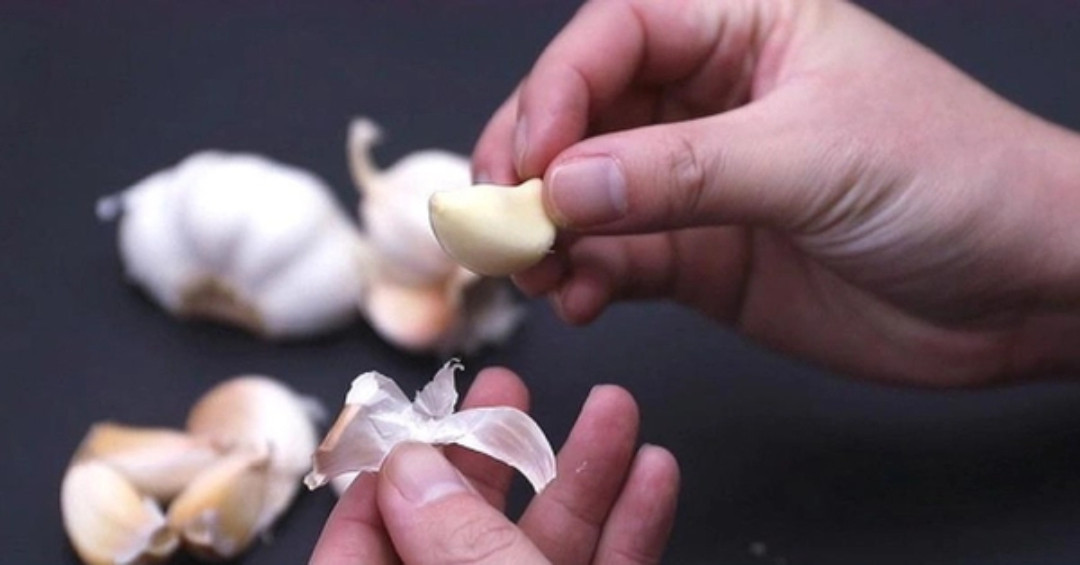 Bóc tỏi nhanh bằng máy xay sinh tố có thể giúp không ám mùi lên tay.
