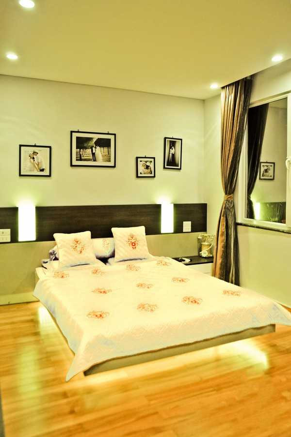 Giường ngủ được bố trí vào vị trí bàn làm việc trước đây, giường dạng flying bed có thiết kế độc đáo cảm giác như không thấy chân giường giúp tạo cảm giác không gian như rộng hơn và việc lau dọn thuận tiện hơn. Hốc tường cũ đã được bịt vào tạo thành mảng phẳng.
