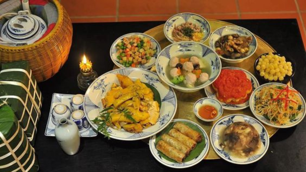 - Bánh chưng, bánh tét: Bánh chưng là món ăn không thể thiếu trong mâm cơm cúng ngày Tết của người miền Bắc, còn mâm cỗ Tết của người miền Nam luôn có bánh tét.