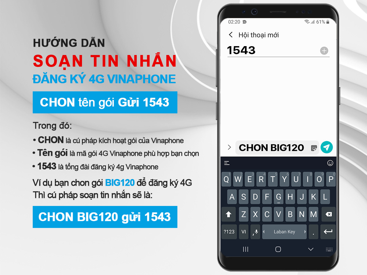 Cú pháp đăng ký 4G Vina chính thức như sau: