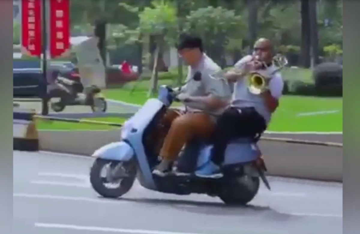 Cao thủ lái xe máy đi nghiêng trên đường