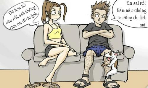 - Em nói vậy là sai rồi! Mỗi năm vợ chồng mình đều đi du lịch dài ngày!
