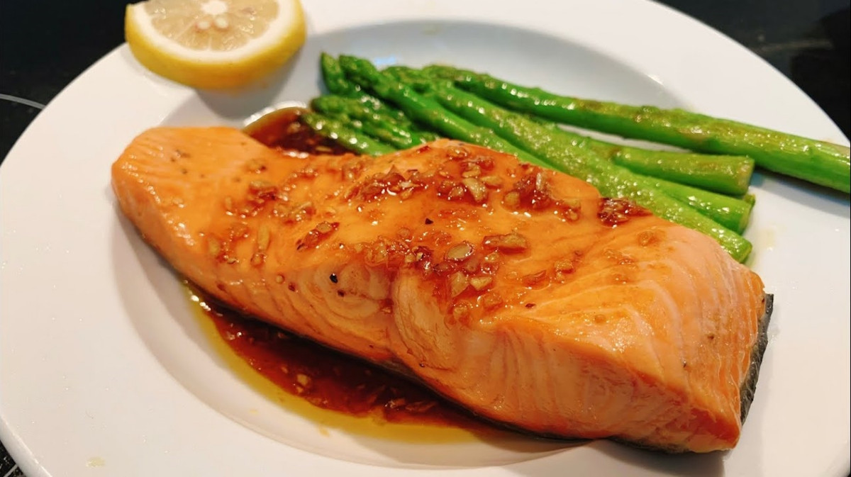 Cá hồi áp chảo mềm, nhiều dinh dưỡng. (Ảnh: Bảo Linh)