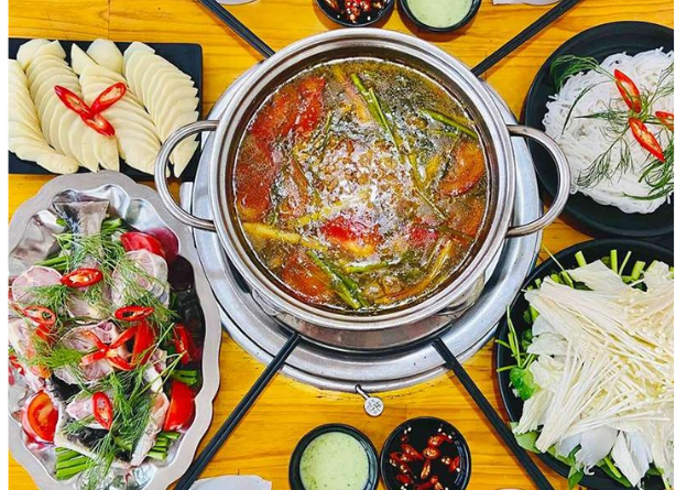 Nồi cá trắm nhúng mẻ thơm ngon, hấp dẫn. (Ảnh: Đ.M.X)
