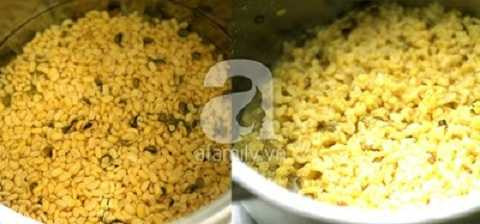 | Đậu xanh rửa sạch, ngâm nước nóng khoảng 2-8h cho mềm, sau đó cho nước xâm xấp vào nồi nấu nhừ. |