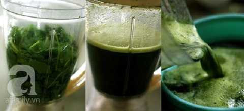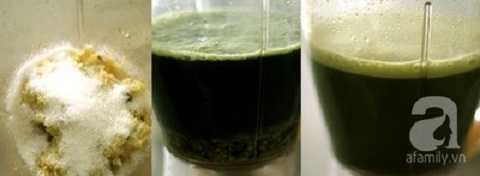 | Rau má xắt nhỏ, cho cùng nước lọc vào máy xay sinh tố xay nhỏ, lọc lấy nước. |