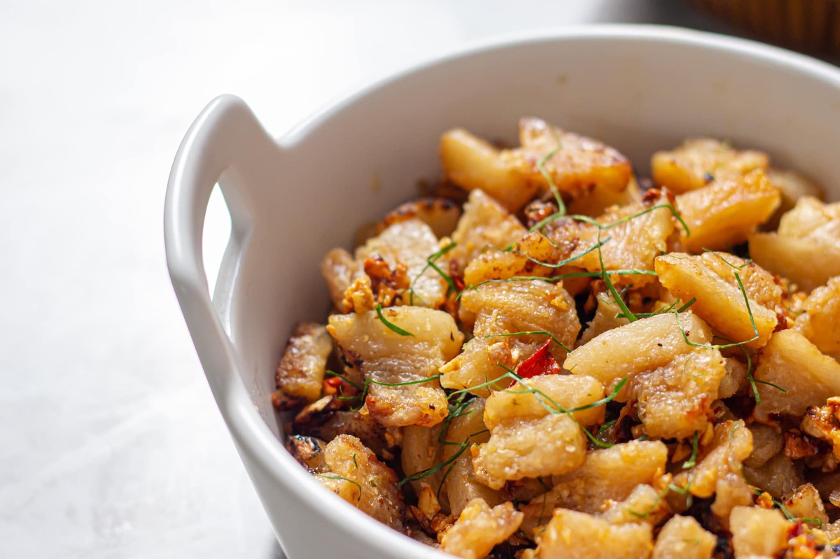 Tóp mỡ cháy tỏi là món ăn vặt đơn giản mà hấp dẫn. (Ảnh: Mashed)