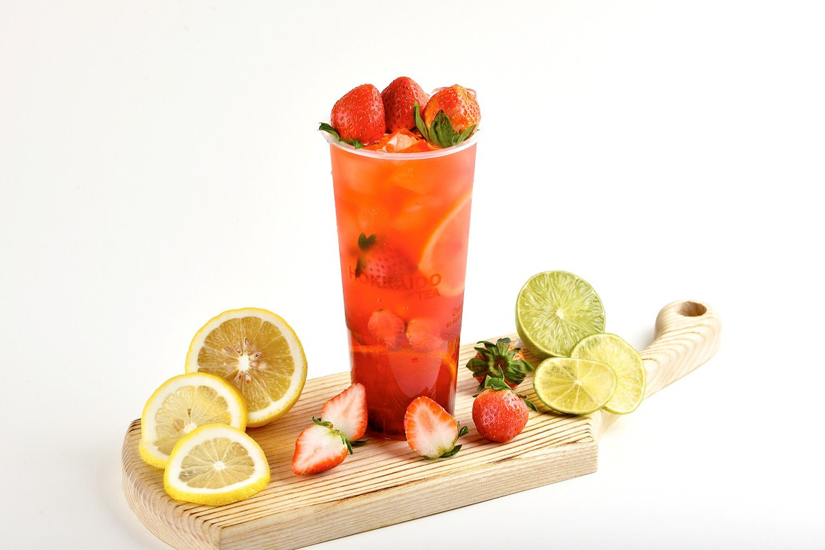 Đây là công thức pha trà dâu tây hot hit hiện nay. Bạn cần chuẩn bị các nguyên liệu sau: