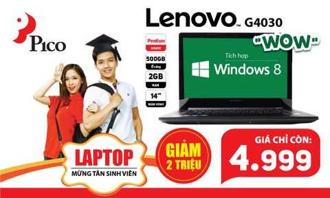 Đặc biệt, tại Siêu thị điện máy Pico, sản phẩm laptop Lenovo G4030-80FY00DLVN với win bản quyền sẽ chỉ còn 4.999.000đ, giảm 2 triệu so với giá ban đầu. Giá của Asus X454LA-VX289D cũng được giảm tới 1.5 triệu, chỉ còn 6.999.000đ. Dell Inspiron N3551-70060249 chỉ còn 5.499.000đ trong chương trình mừng tân sinh viên của Pico. Ngoài ra, khách hàng còn được tặng kèm phiếu giảm giá hoặc thẻ cào với trị giá lên tới 500.000đ.