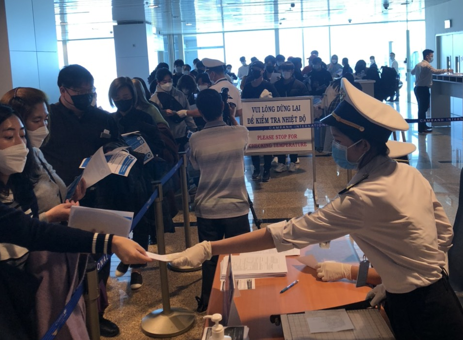 Ngành y tế kiểm tra hành khách vừa đi máy bay xuống sân bay quốc tế Cam Ranh (Khánh Hòa)