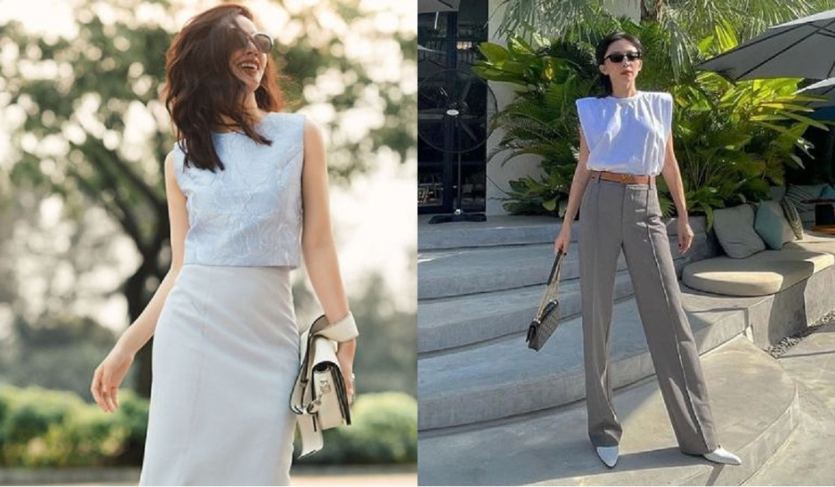 Để có vẻ ngoài vừa thanh lịch, vừa gợi cảm và năng động, các quý cô đừng quên diện áo sát nách với chân váy xẻ tà.