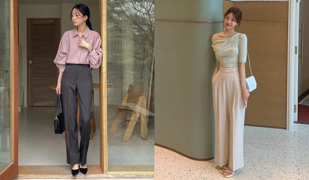 Bạn nữ có chiều cao khiêm tốn muốn tôn dáng tối ưu hãy diện quần ống rộng cùng áo dáng lửng hoặc áo nhấn eo.
