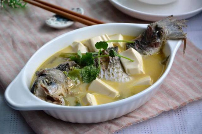 Canh cá chép đậu phụ - món ăn giúp tăng estrogen, bổ máu. (Ảnh: Sohu)