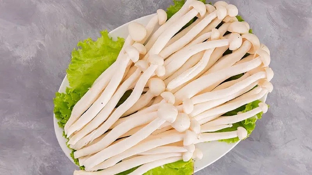 Nấm cắt bỏ phần chân, tách ra và rửa sạch. Chần nấm qua nước nóng 30 giây rồi vớt ra.