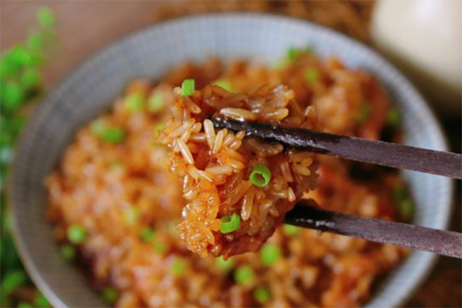 Món xôi sườn vừa lạ vừa ngon và không khó chế biến. (Ảnh: Ksina)