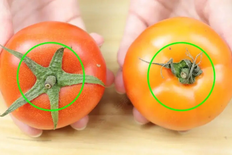 Nhận biết cà chua chín tự nhiên bằng cách quan sát phần đáy. (Ảnh: Sohu)