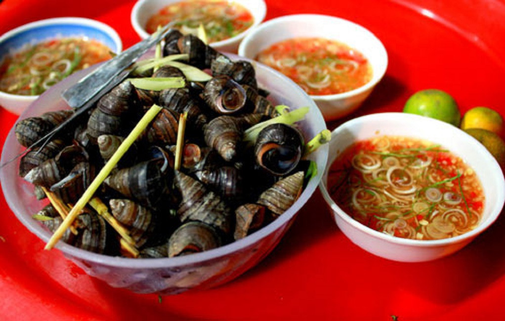 Nguyên liệu pha nước chấm ốc: 3 thìa nước mắm, 2 thìa đường, 1 cây sả, 1 củ gừng, 3 - 5 trái tắc (quất), 2 trái ớt, 5 lá chanh.