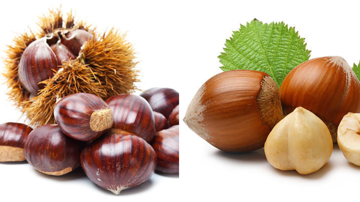 Phân biệt hạt dẻ và hạt phỉ: Hình bên trái là hạt dẻ, bên phải là hạt phỉ. (Ảnh minh hoạ: Istock)
