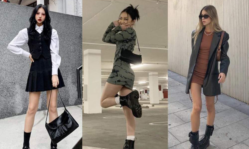 Diện giày boot cùng chân váy là một sự kết hợp đáng lưu ý. Để hoàn thiện thêm vẻ ngoài, hãy kết hợp cùng với áo blazer và thắt lưng.