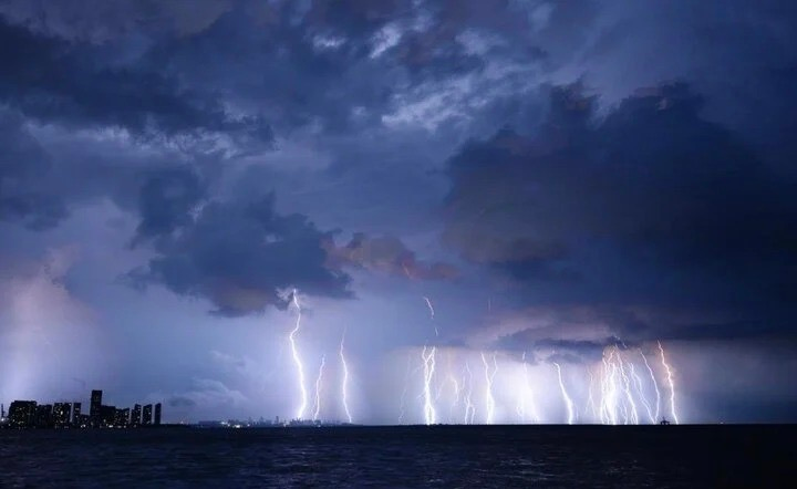 Siêu bão Yagi đã gây ra nhiều trận sấm sét lớn tại thành phố Hải Khẩu, Hải Nam, Trung Quốc. (Ảnh: Weibo)