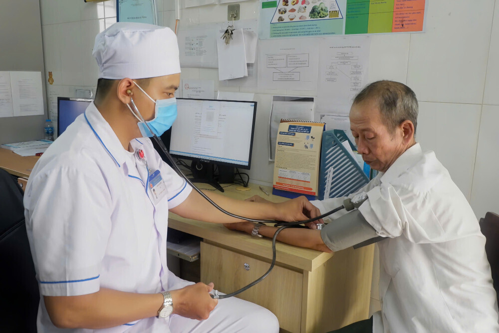 Người dân khám bệnh tại Trạm Y tế xã An Lục Long (huyện Châu Thành, tỉnh Long An).