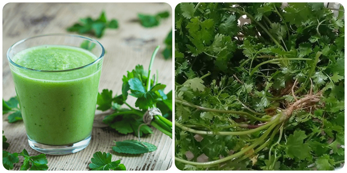 Báo VietNamNet dẫn nguồn NaturalNews cho biết, bạn có thể tham khảo 2 công thức nước ép rau mùi thanh lọc cơ thể như sau: