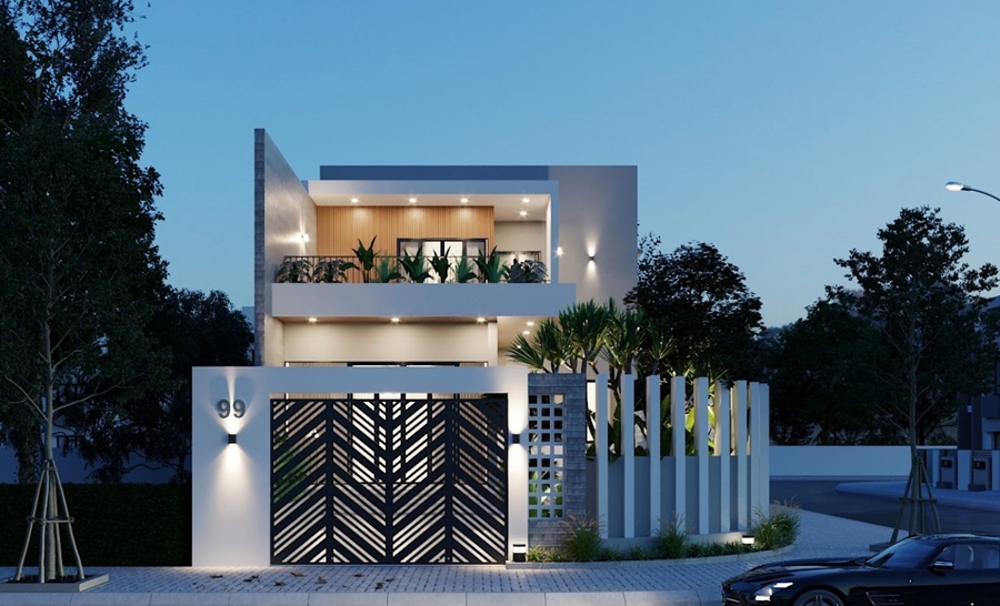 Hình khối kiến trúc đóng vai trò quan trọng trong việc tạo điểm nhấn cho nhà lô góc. Những đường nét dứt khoát, mặt tiền kính lớn, ban công lam thép bố trí hợp lý sẽ giúp ngôi nhà nổi bật và lấy sáng tối đa.