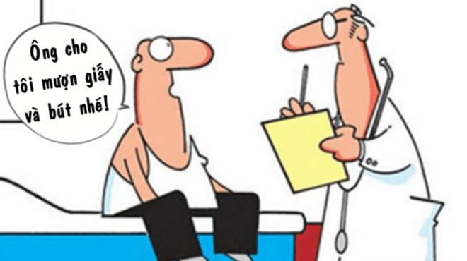 - Bác sĩ có thể cho tôi mượn một cái bút và một tờ giấy được không ạ?