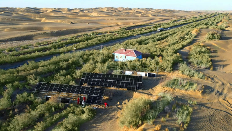 Trung Quốc hướng tới thúc đẩy xây dựng các nhà máy điện mặt trời và điện gió quy mô lớn ở vùng sa mạc. Điện sản xuất từ nguồn năng lượng sạch không chỉ cung cấp cho Tân Cương mà còn góp phần vào mục tiêu không thải carbon của toàn vùng.