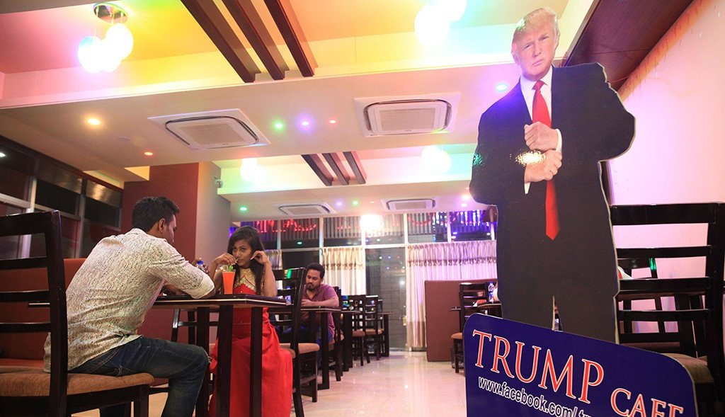 Tấm biển hiệu treo bên ngoài quán cafe với tên của tổng thống Mỹ. Quán được mở hồi tháng 1 tại Dhaka, thủ đô của Bangladesh, bởi Shafiul Islam - doanh nhân 29 tuổi ủng hộ Donald Trump nồng nhiệt.
